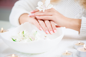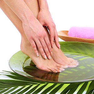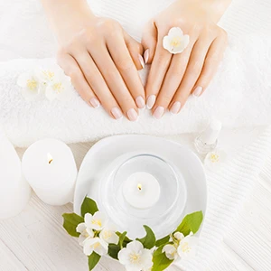 Feet soaking in water bath with a choice of chamomile or pearls. CHAMOMILE gives healing, calm and soothing. OR PEARL gives a healing anti-aging, brighten and UV protection. Finishing with 6 packs steps, then following with hot towel and hot stone massage with polish application.NU SKIN ORGANIC PEDICURE$60+