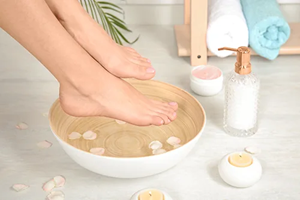 Feet soaking in green tea honey to help nourish, refined and provide the anti-aging and detoxifying benefits. Feet are softened in a soak and exfoliate a scrub. It washes away dead skin, dirt and odor as it dissolves in water. Soothing and hydrating mask is a restorative skin care mask that smoothers and will draw in moisture while softening and relaxing. Follow with a real organic orange fruit rubbing into your skin that leaves Vitamin C in your skin. Then treat your heels and soles with a callus softener that penetrates deeply into the skin that protects and heals the feet. Skin feels smooth and soft, fresh and energized. Soften soothe and condition your skin with our super moisturizing. Your feet will be infused with a blend of real Honey and fragrant Green Tea cream extract to help calm and condition dry skin. Finishes with hot towel and hot stone to massage your leg and keep them feeling good and moisturize longer.